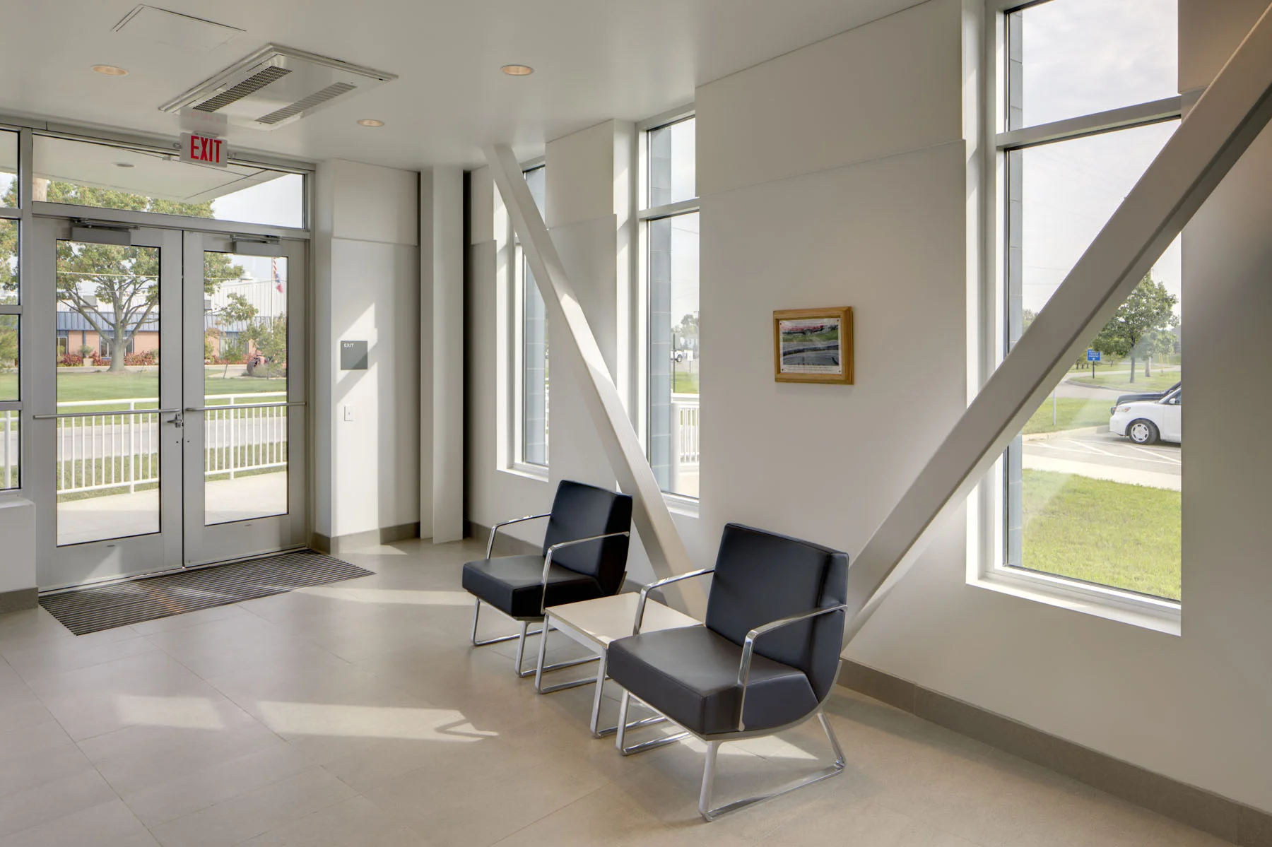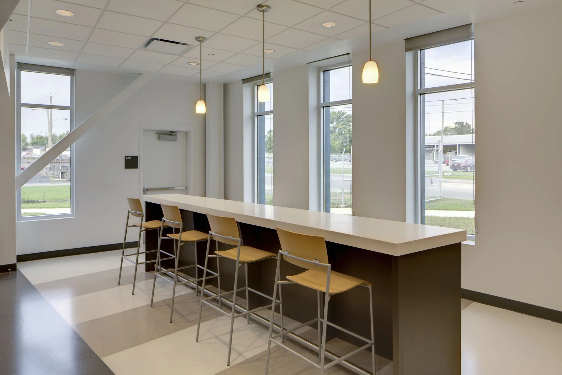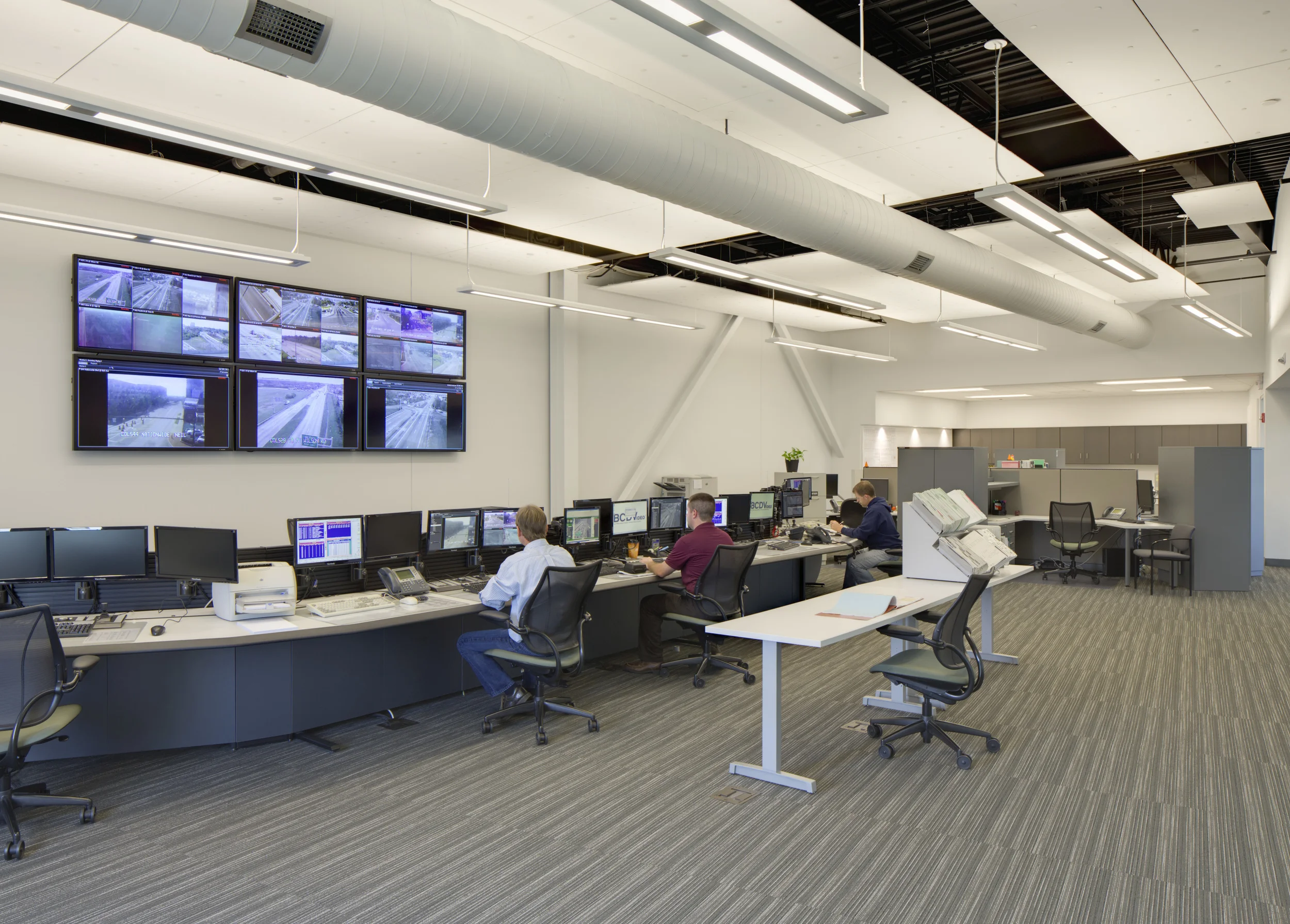 The traffic management center in Columbus Ohio is representative of an urban project most wouldn’t think of, traffic control. Though mostly unseen this major piece of infrastructure controls the movement throughout all major cities. In the specific example of Columbus, the city was looking to relocate out of their existing facilities and we sought to provide a space that would not only function for daily management of their systems but serve as a hub for city wide emergencies and provide space for the different agencies to come together. The building adds onto the cities existing management storage facilities but makes a point to stand out as a new entity. Layers of glass were used from the facade, through the conference room, and finally into the actual control room allowing for transparency and visual access to the heart of the system, its monitors.